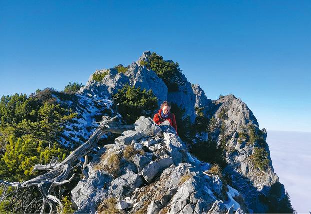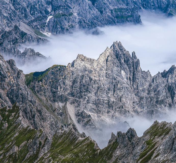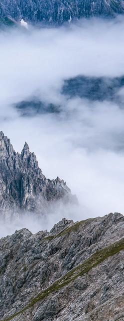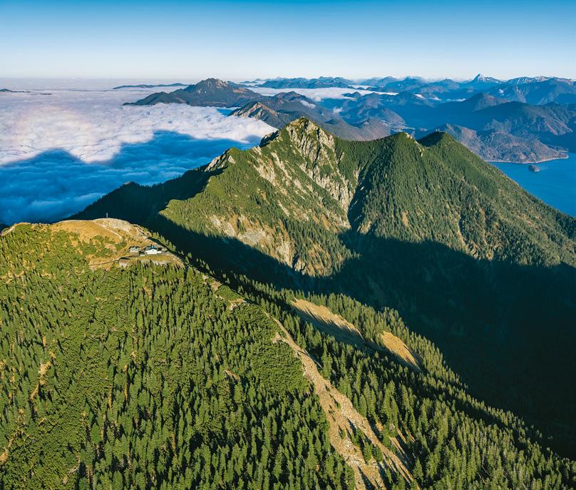 der türkisfarbene Walchensee und die bis in den Frühsommer weißen KarwendelNordwände. Bei klarer Sicht lässt sich ganz hinten am Stubaier Alpenhauptkamm sogar der markante Lüsener Fernerkogel ausmachen, dessen Gletscherflächen in der Sommersonne glänzen. Aufgrund der sensationellen Lage und der schnellen Erreichbarkeit vor allem von München aus gibt es echte Bergeinsamkeit weder am Herzogstand noch am Heimgarten. Michael Pröttel