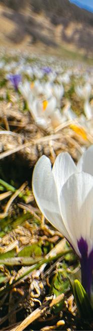 Weiß ist die dominierende Farbe, doch dabei handelt es sich nicht um Schnee, sondern um einen Teppich aus weißen und lila Krokussen, die die braunen Wiesen in ein Blütenmeer verwandeln. Normalerweise herrscht Anfang April im hochgelegenen Talschluss von Matsch Hochsaison und es liegt mehr als genug Schnee, um vom Parkplatz aus mit Ski zu starten. Doch der April 2025 ähnelt eher einem Frühsommermonat. Weit und breit kein Schnee, so wie schon den ganzen Winter nicht. „Vor zwei Jahren war es noch schlechter“, erinnert sich Manfred Heinisch vom