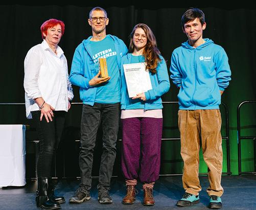 Mit dem Ehrenamtspreis würdigt der DAV herausragende Leistungen im Verband. 2025 ging der Preis an das Inklusionsprojekt #KletternOhneGrenzen der Sektion Bremen. Die Initiative eröffnet Menschen den Zugang zum Klettersport, die bislang aufgrund körperlicher oder geistiger Beeinträchtigungen vor Hürden standen. Besonders hervorzuheben ist, dass das ursprüngliche Ziel – Teilnehmende zu motivieren, selbst eine Trainer*innen-Ausbildung zu absolvieren und anschließend aktiv die Gruppe zu unterstützen – eindrucksvoll erreicht wurde. Daraus entstand das neue, starke Motto: „Von Menschen mit Beeinträchtigungen für Menschen mit Beeinträchtigungen.“