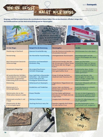 Bergwege und Kletterrouten können die verschiedensten Namen haben. Wie sie dazu kommen, offenbart einiges über den Einfallsreichtum und den Motivationshintergrund der Namensgeber.