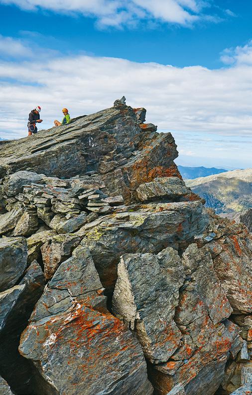 Wer schon jetzt einen Ausflug ins Kleinwalsertal machen möchte, findet ab Seite 30 eine kurzweilige Mehrtageswanderung vom Fellhorn zum Hohen Ifen. Auch zu Fuß geht es ab Seite 10 durch die Südalpen: In den Cottischen Alpen folgen wir auf alpinen Wegen den Spuren der leidvollen Siedlungsgeschichte der Waldenser. Dass man sich auch direkt vor der Haustür (o.k. zugegeben, nicht schwer, wenn die in Bad Gastein steht) ins Abenteuer stürzen kann, zeigt eine Radrunde um den Karnischen Hauptkamm (S. 60). Auf teils gemütlichen, gut ausgeschilderten Radwegen, teils aber auch anspruchsvolleren Singletrails fährt unser Protagonisten-Paar durch Hochgebirgslandschaft, einsame Bergwelten und vorbei an malerischen kleinen Orten und sympathischen Städten. Extremer wird’s auf Seite 56: Alba Lucia Neder hatte sich das Ziel gesetzt, 2023 hundert Alpinrouten aus dem Buch-Klassiker „Im extremen Fels“ zu klettern. Wie viele sie wohl geschafft hat? In luftigen Höhen ist auch ein Team im Wallis unterwegs – warum man das Highlinen durchaus als (außergewöhnliche) Bergsportart verstehen kann, wird auf Seite 18 ersichtlich. Egal, ob in Wanderschuhen, auf zwei Rädern oder am Kletterseil: Nutzen wir den Herbst noch – der Winter wird lang genug!