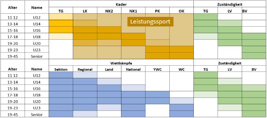 Altersstruktur in den jeweiligen Kadern Wettkampfebene in der jeweiligen Altersstruktur Zuständigkeit für die jeweilige Altersstruktur