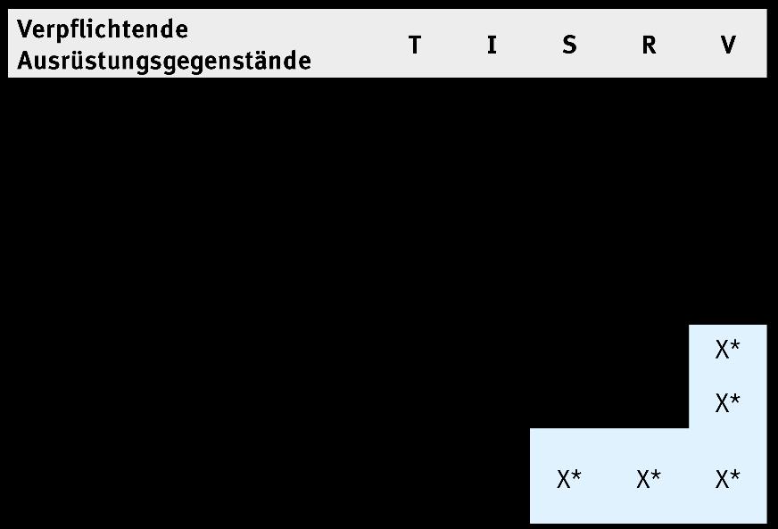 (X) verpflichtende Ausrüstungs- und Bekleidungsgegenstände