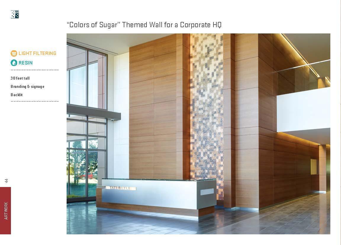 A touch of art in any space is indispensable in making it inspiring, elevating and whole. Our materials yield to the unique expression of the artistic vision with an abundance of colors, textures and patterns. The customizability of materials and their fabrication allows the artist to achieve a vision in a tangible form.