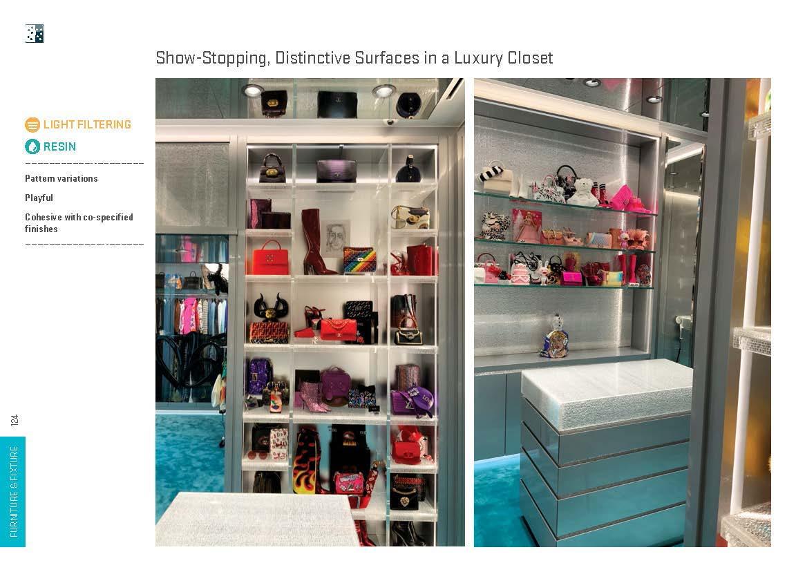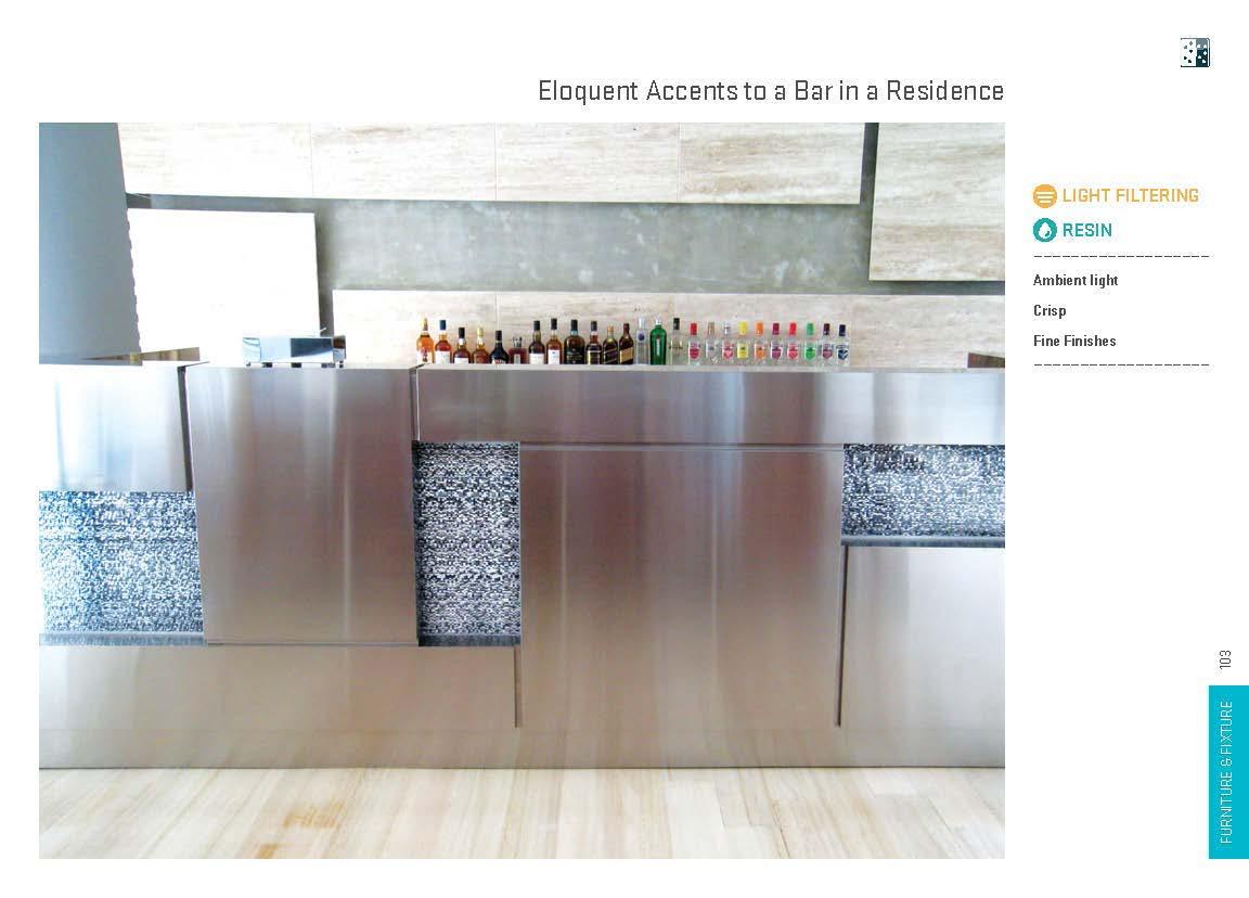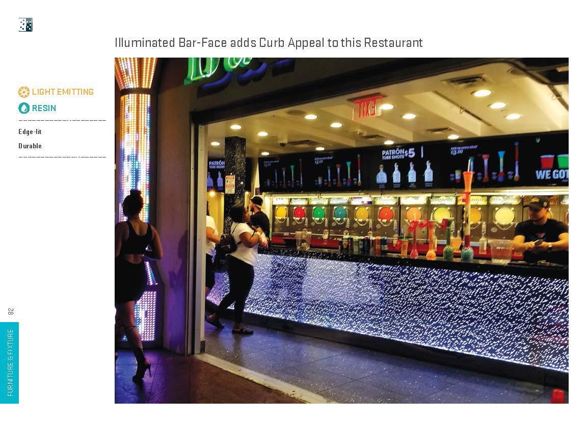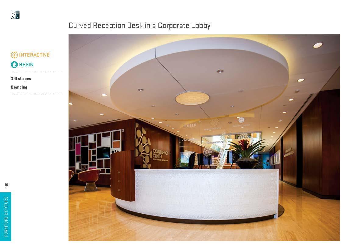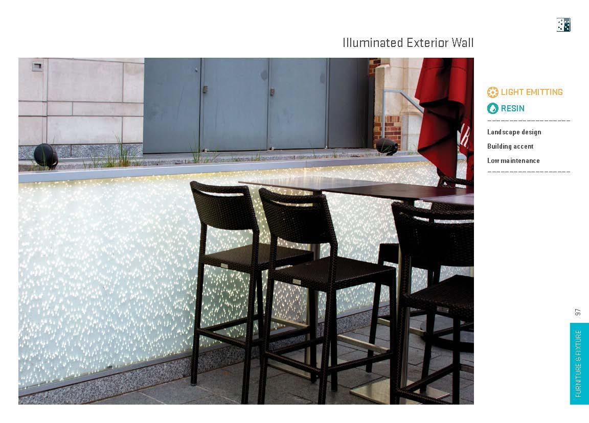 Creative furniture and fixture designs have been realized with light manipulating materials in a wide range of applications, including shelves, displays, tables, seats, accents, horizontal surfaces, dimensional surfaces and complex monolithic pieces. These installations lend themselves to both commercial and residential environments.