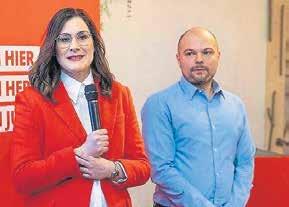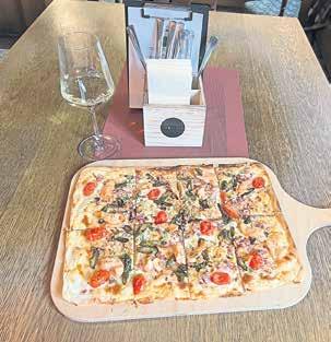 im offenen Ausschank. „Wir haben allesamt Weine, die schmecken, und mit Sicherheit für jeden etwas dabei“, so Dirk. „Mit Spaß im Glas“ lautet denn auch ihr Motto. Das Publikum ist bunt gemischt, viele junge Gäste, aber auch Stammkunden der Vorbesitzer besuchen das Weinhaus, das eher auf eine kleine Speisekarte setzt. Neben Spunde- und Handkäs sind vor allem die Flammkuchen beliebt und köstlich. Der Teig stammt aus dem Elsass, der Belag ist hausgemacht. Ergänzt wird die Karte durch regionale Tagesgerichte. Auch für Veganer und Vegetarier ist immer was dabei. Ausgeschenkt wird die rheinhessische Weinschorle – ganz klassisch mit Riesling – in der Mainzer Stange und das Pfälzer Pendant im echten Dubbeglas. Ab und an bietet die Droschkenstube auch Wine-Tastings mit passenden Menüs an. Den Auftakt machte Arno Schemps, Inhaber und Kellermeister von Chateau Schemps, der von der rheinhessisch-pfälzischen Grenze aus Worms-Herrnsheim stammt und als leidenschaftlicher Koch auch noch gleich ein dreigängiges Menü mitbrachte. „Wir wollen künftig mehr solcher WeinGenuss-Angebote in der Droschkenstube ausprobieren“, schaut Dirk in die nahe Zukunft.
