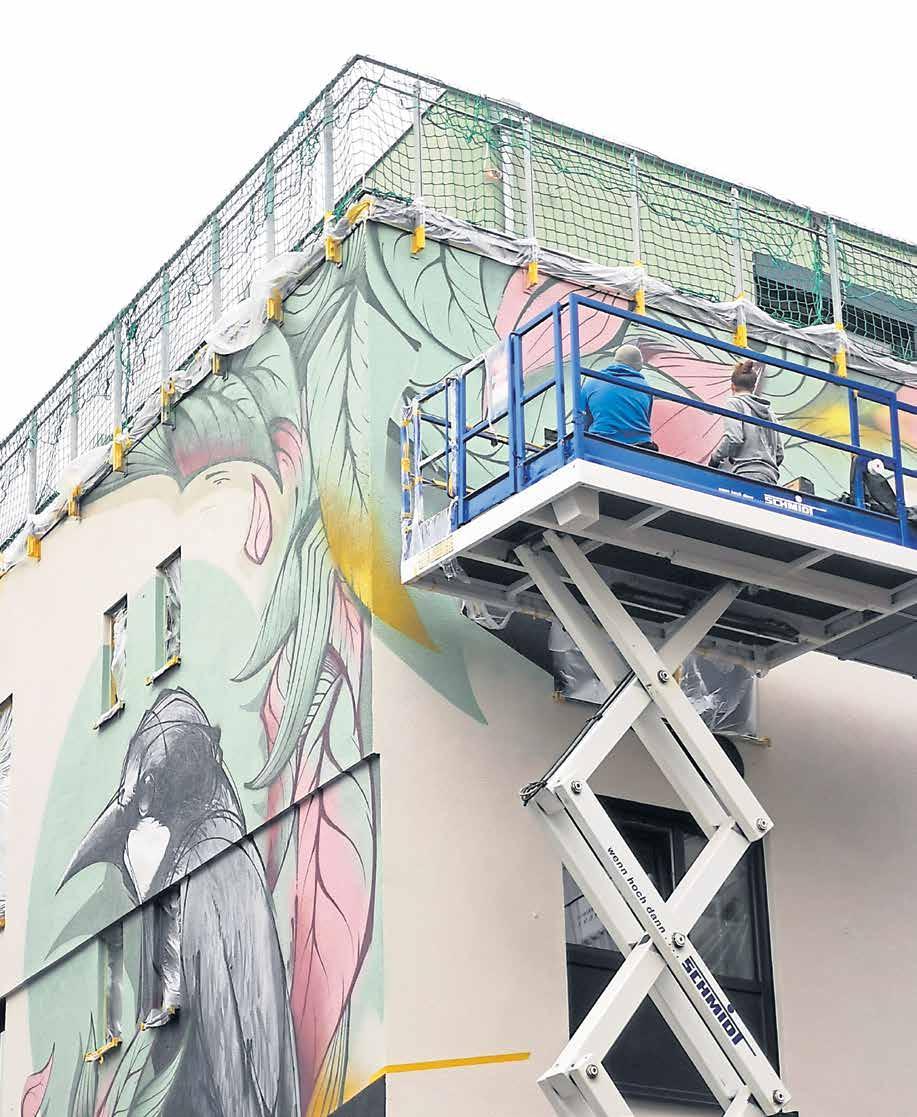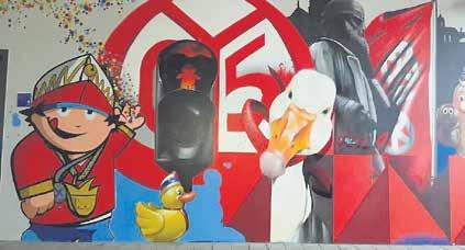 sind dankbare Motive, die viele Menschen mögen. Auch wenn man die Tiere nur noch selten sieht, da die Natur immer weiter durch die Menschen verdrängt wird.“ Sein Start war begleitet von Berichterstattungen im ZDF und der lokalen Presse. Besser hätte es für den Fastnachtsfan nicht laufen können. „Ich bin bis heute demütig, für jeden Auftrag.“ Trotz guter Auftragslage ist Leif ein bescheidener Künstler geblieben. Auch wenn er sich selbst nicht als Künstler sieht, sondern eher als „Auftragssprüher“ wie er selbst sagt, und lächelt dabei über seine Tasse Kaffee hinweg. Was ihn bewegt und antreibt? „Es kommen so viele Menschen auf mich zu, wenn ich in der Stadt sprühe, und ich bekomme direktes Feedback. Das ist toll.“ Manchmal möchten ihm Leute sogar Trinkgeld geben oder klopfen ihm auf die Schulter.
