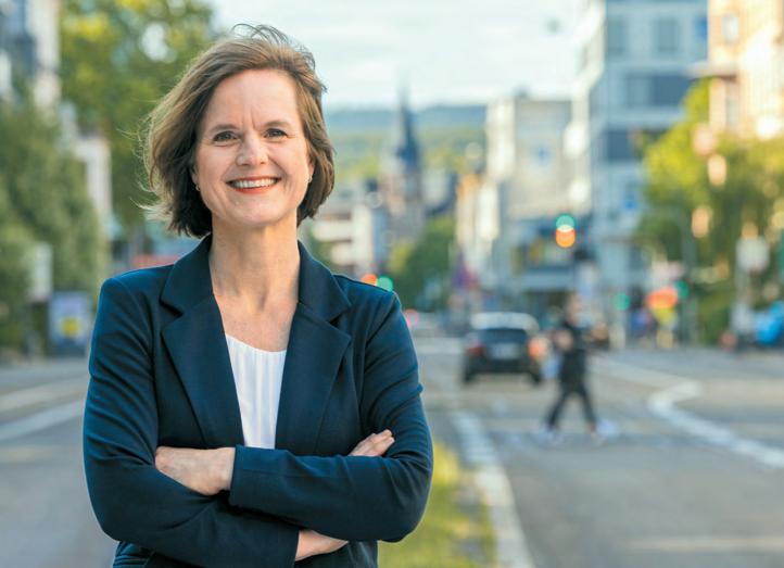 Nun zur einzigen Frau im Kandidat:innenfeld. Als Oberbürgermeisterin möchte Gesine Bonnet (Grüne) ihr Amt nutzen, um den Alltag für alle Wiesbadener:innen besser zu machen. Dazu gehöre auch ein neues Mobilitätskonzept mit attraktiven Alternativen zum Auto, um Engpässe im Innenstadtverkehr zu lösen. Diese Engpässe entstehen aktuell aber auch durch die zahlreichen Baustellen im Stadtbild, die laut Bonnet dem Sanierungsstau in der städtischen Infrastruktur geschuldet seien. Diesen