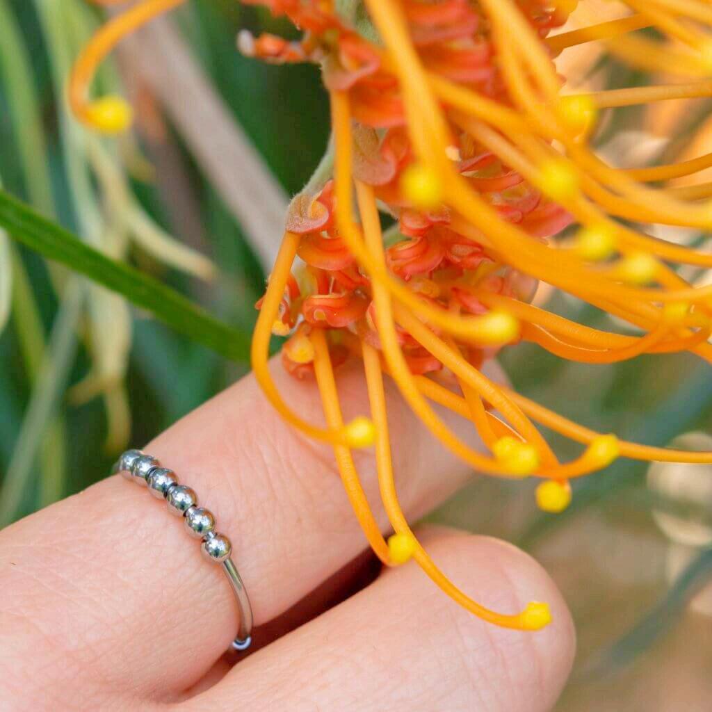 Adjustable Beaded Anxiety Ring Silver