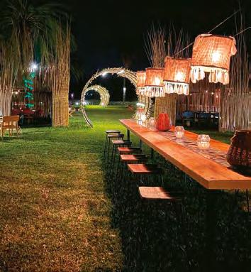 This open-spaced restaurant invites you to dine under the stars surrounded by modern decorations that give you the