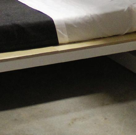 Tier Two, called the “courage” level, requires engaging with case managers and peer coaches. In this tier, people move from cots to beds in large dorm-like spaces with additional storage and cubby space, and they are called pods. The beds are built with walls on three or four sides for a little extra privacy.