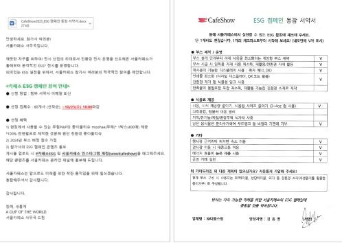 캠페인은 서울카페쇼가 ESG 가치를 실현하는 데 있어 중요한 역할을 하며, 지속 가능한 전시 문화를