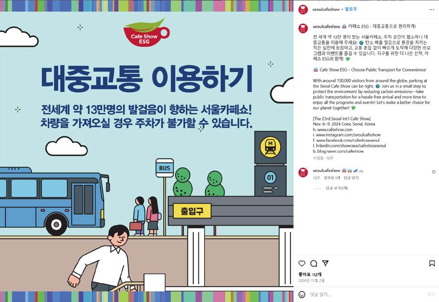 수단을 선택하도록 장려하고 있습니다. 대중교통 이용을 장려하는 캠페인은 서울카페쇼의 ESG