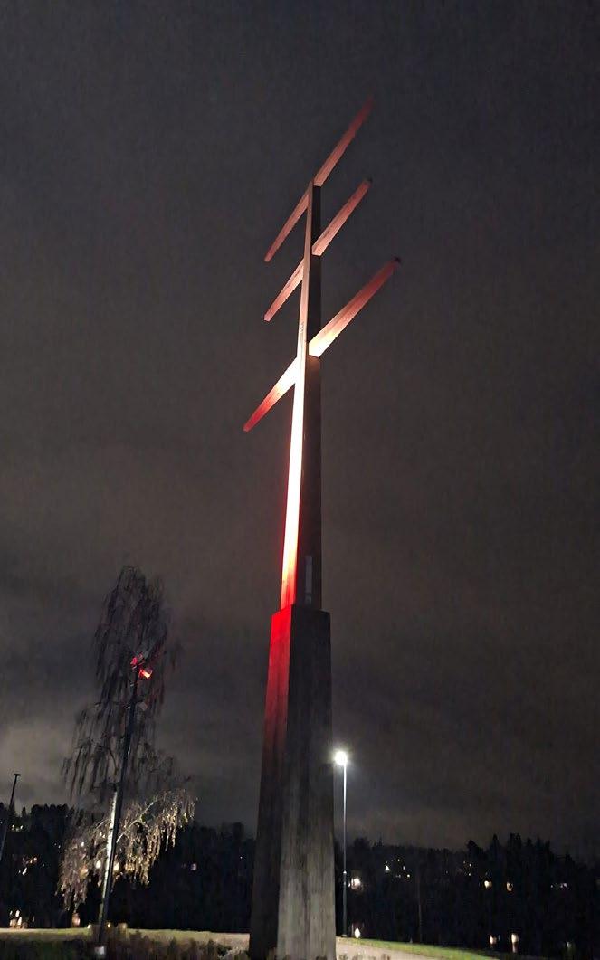 KSS Rakennus toi valoa marraskuun pimeyteen asentamalla valaistuksen Kuusankosken Rantapuistossa sijaitsevan vanhan voimajohtopylvään yhteyteen. Valaistuksen värisävyjä voidaan muuttaa ajankohdan ja teemojen mukaan.