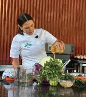 Chef Megan McCarthy presents a cooking demonstration of Spicy Peanut Slaw in the Edible Garden Outdoor Kitchen during the Georgia Peanut Day at the Atlanta Botanical Garden.