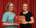 the past president's plaque to Pam Caraway during the Ag Communicators Network annual meeting in Arkansas.