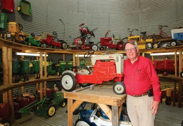 In his "toy barn," Senkbeil has a collection of more than 100 pedal tractors dating back to the 1940s and '50s. "It started when I bought one at a little auction," he recalls. "It was painted green, and I thought I finally