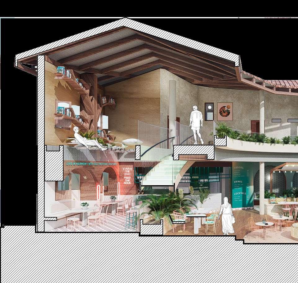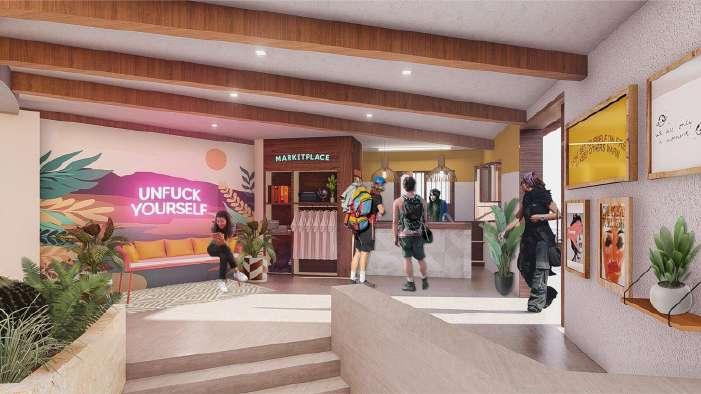 The general concept was Electric Detox, for the client desired not just a buissnes but a rebelious brand to provide a service of wellness within as added value. From this concept, we developed each space of the hostel as a singular atmosphere in relation with the general guideline. From the reception to the restraunt area, bathrooms, stage, wellness room, spa, bath, fire pits, dorms and suites, the space was designed as an experience of wellness.