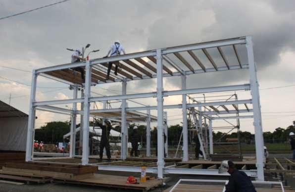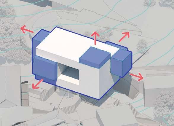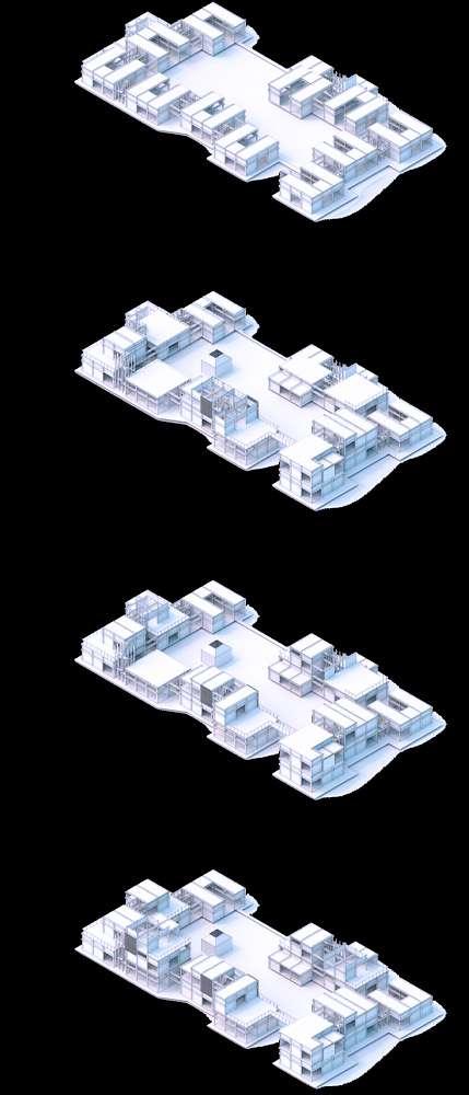 The last one is progresivity. We designed a house that was both easy to contruct, as we demostraded in the contest, and can accommodate not one but two families in the given space by the competition, proposing not just progressivity by the moving ceilings that become the base for the next floor in our urban proposal, but also by giving the possibility that two families can be sheltered in one home separated by the patio, creating what we called the bi-house.