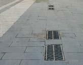 The drainage systems are similar for both streets. Drainage grills are used and they are located linearly in front of the building. A slope of approximately 1.5- 2 % takes the water out of the streets.