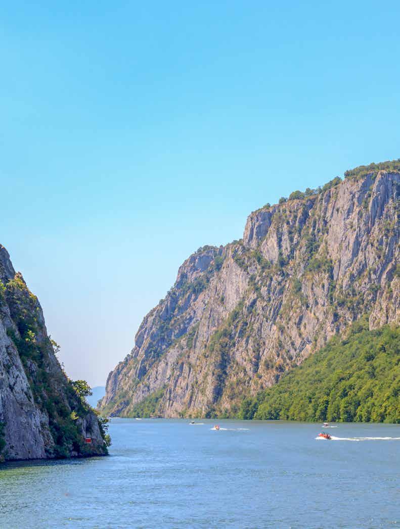 Les gorges de Đerdap, composées de quatre gorges et de trois bassins, s‘étendent sur 100 kilomètres de long et constituent les plus grandes gorges fluviales d‘Europe. A Đerdap, à certains endroits, le Danube a eint plus de 80 mètres de profondeur.