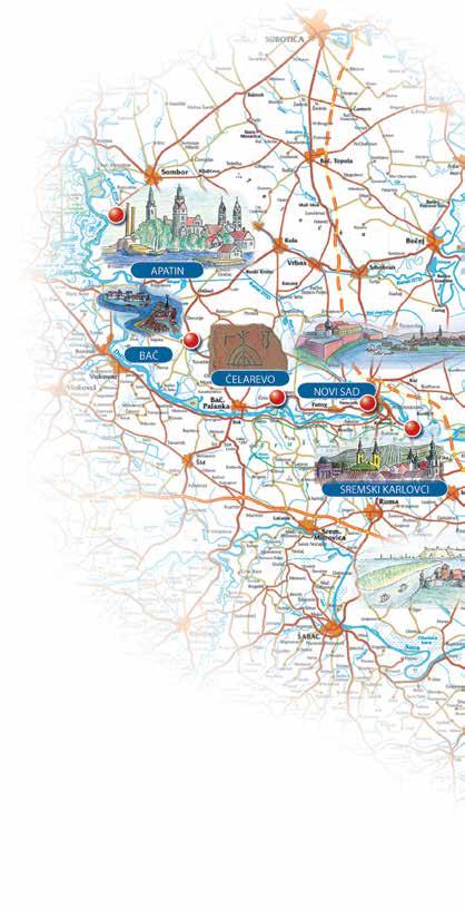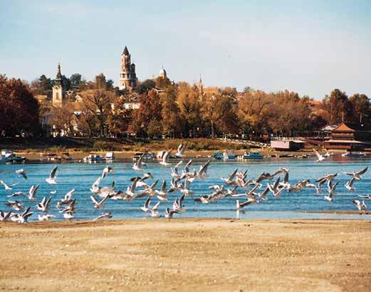The journey along the Danube in Serbia begins with the landscapes of the Nature Reserve Gornje Podunavlje. Beyond the horizon of dense vegetation and giant forests lies one of the last oases of wildlife of marshes and wetlands. In the space traversed by the backwa ters and reeds, in their natural environment there live herds of deer and a colourful world of birds: white-tailed eagle – the largest eagle of our continent, wild geese, herons, rare black storks... In the interior spread the “carpets” of white and yellow water lilies making these landscapes literally unreal. Behind the flood zone of the river, there is the densely populated Bačka plains with Sombor in its centre. Sombor is encircled by farms and small villages, and down the stream, on the banks of the Danube lie two picturesque towns: Apatin and Bačka Palanka.