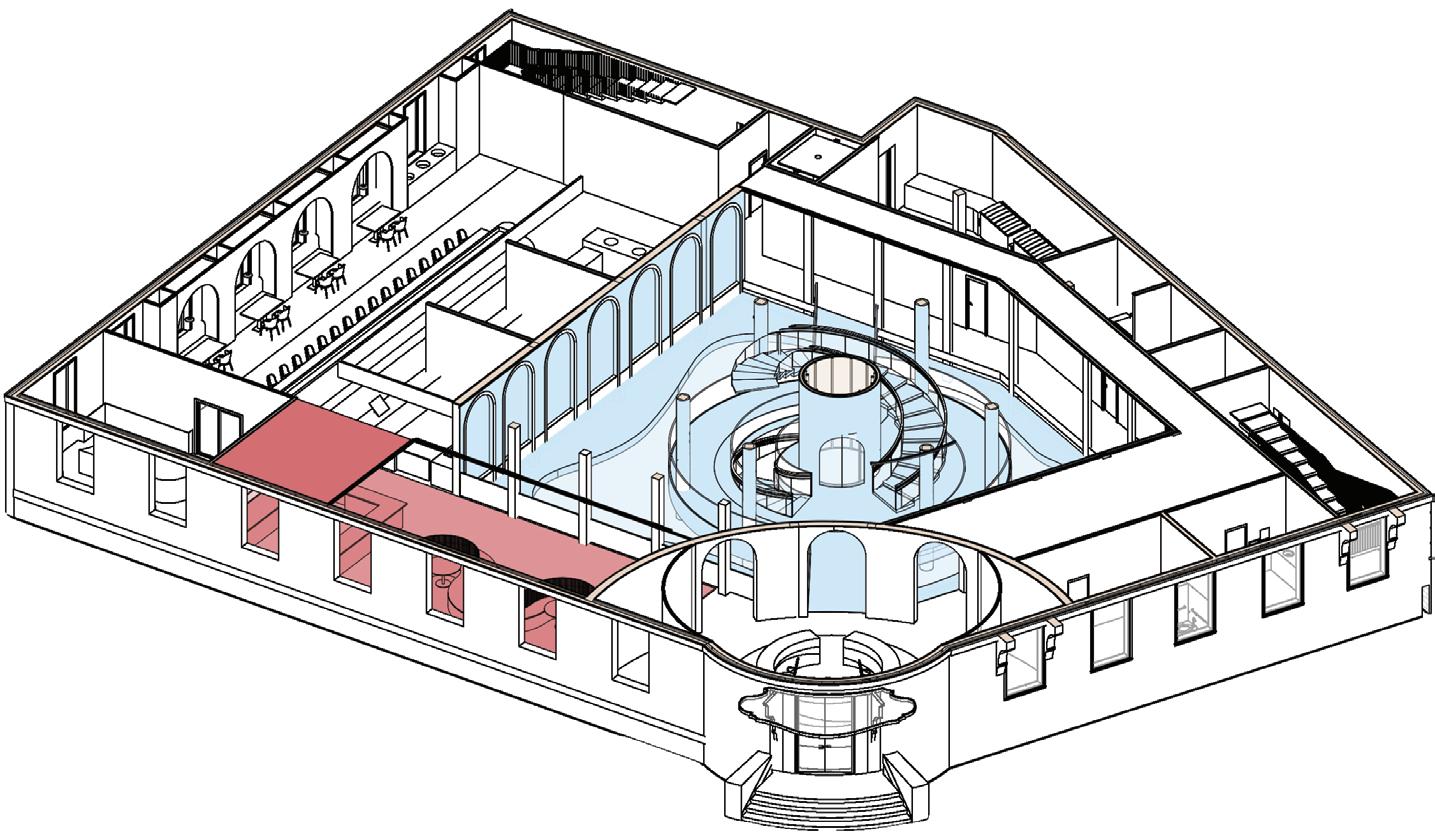 Florence, as one of the world’s rising fashion capitals, attracts designers, artists, and stylists from all over the globe. This hostel is designed as a common space where fashion enhusiasts can gather and grow their love of design. Throughout the seasons of time, Italian fashion has evolved in cycles, incorporating past influence from the Renaissance and combining it with modern design. Cyclical integration is the architectural foundation of this hostel. Guests will be able to feel the evolution around them as callouts to their favorite design houses are showcased throughout the space. 2022