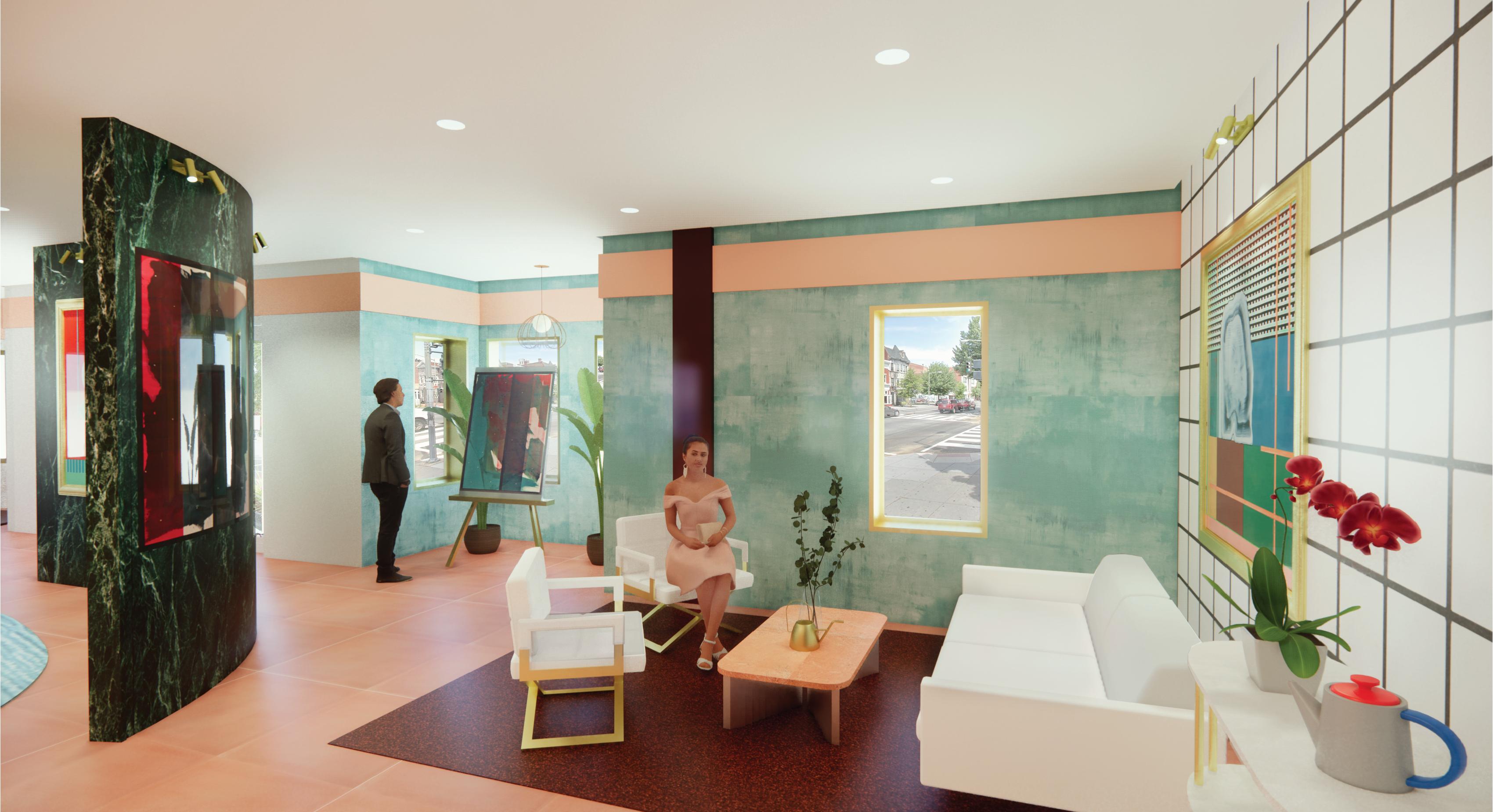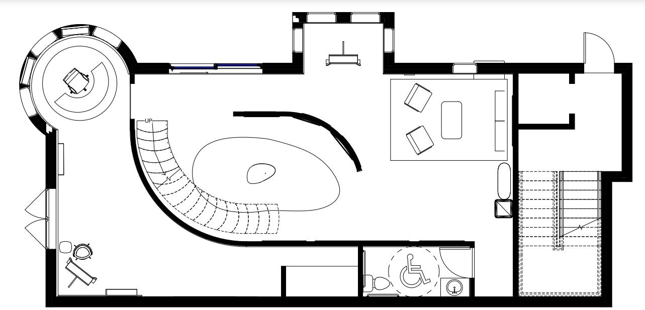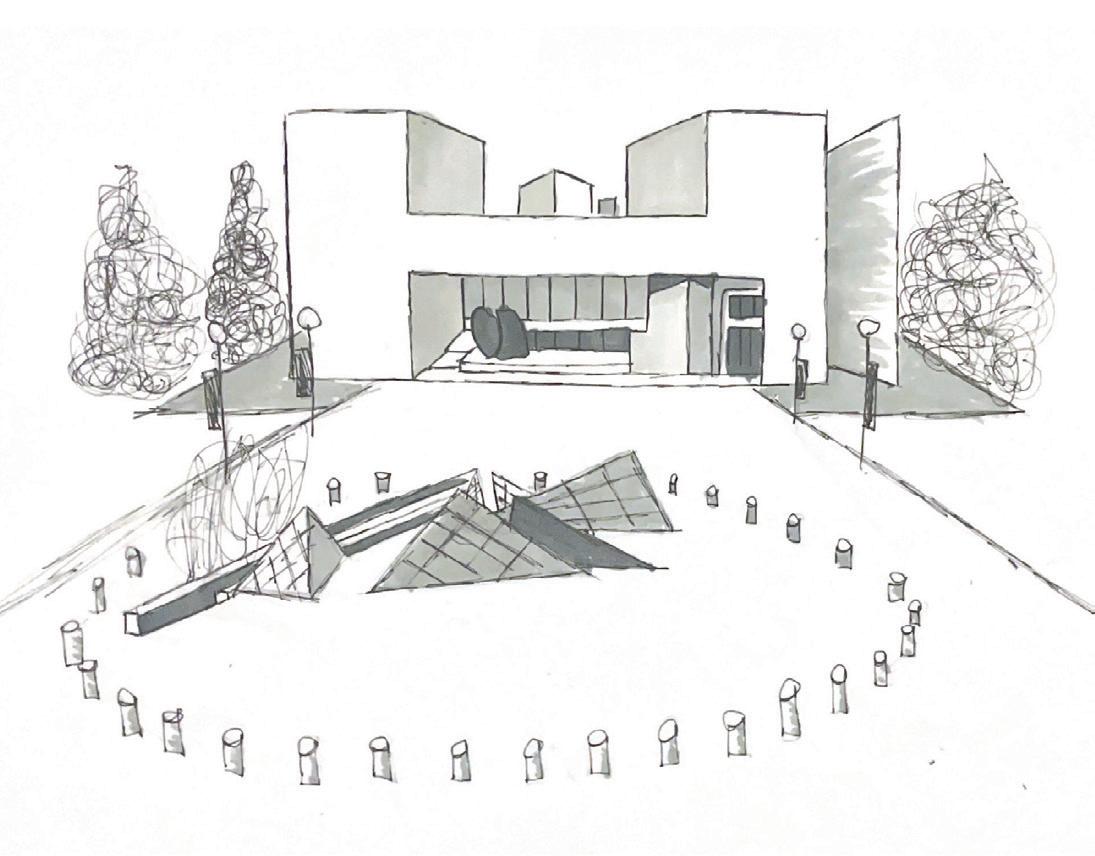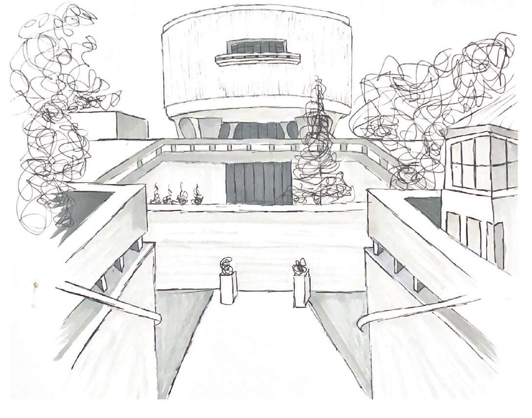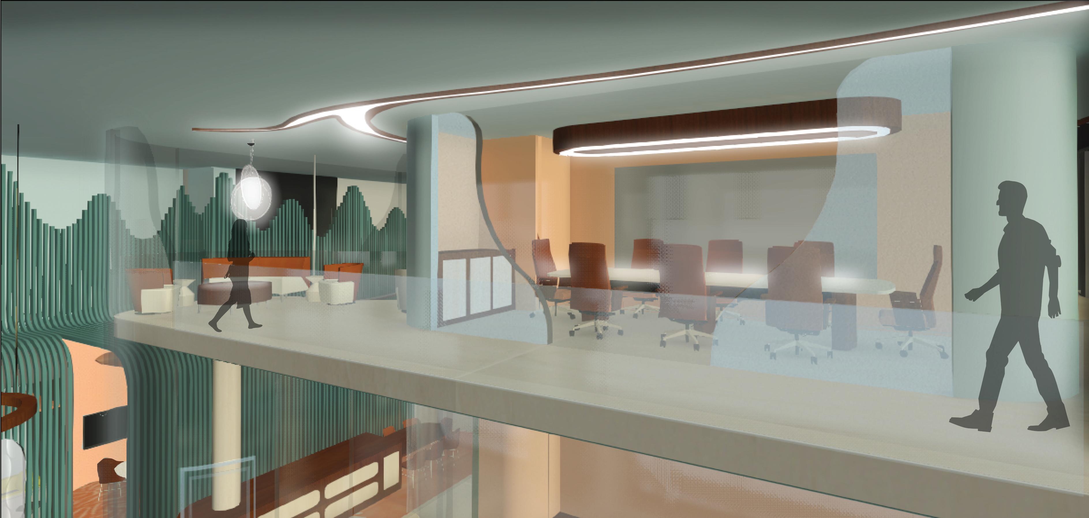 As a philosophical visionary, Egan Frantz breaks the norms of societal thought and action through his art. While abstract, the disruptive nature of Egan’s art is apparent in his use of organic amongst a grid. This design, based on his piece “Rocking Horse” shown above, aims to mirror his efforts by breaking the grid. Strong curves and organic forms lie amidst strict linear patterns to peak curiosity and leave the user thinking about the space.