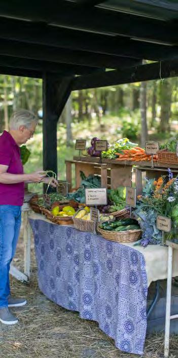 At the hear t of Serenbe Farms is its communitysupported agriculture (CSA) program, which provides members with a weekly share of just-picked organic crops. This farm-to-table approach skips the grocery store and brings nutrient-dense vegetables like heirloom tomatoes, sweet potatoes, broccoli, and rainbow Swiss chard straight from the vine to members’ kitchens. The CSA Farm Share runs across 30 weeks, from April through October.