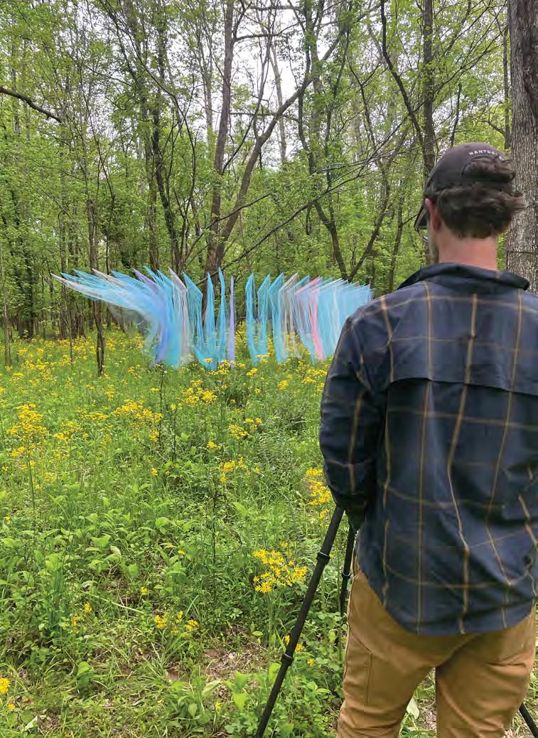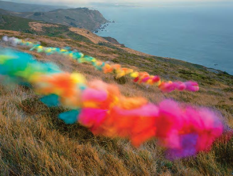 The ar tist is known for his fine art photography that combines landscapes, sculpture and kinetic art. His site-responsive installations, which he creates and photographs on location, pair brightly colored, manufactured materials with the ephemeral beauty of natural landscapes. A Serenbe resident who purchased one of Jackson’s works from Jackson Fine Art in Atlanta suggested to the Art Farm that he might make a great artist in residence, and through a collaboration with the renowned art gallery that coincidentally shares Jackson’s name, the idea was realized in spring 2023.