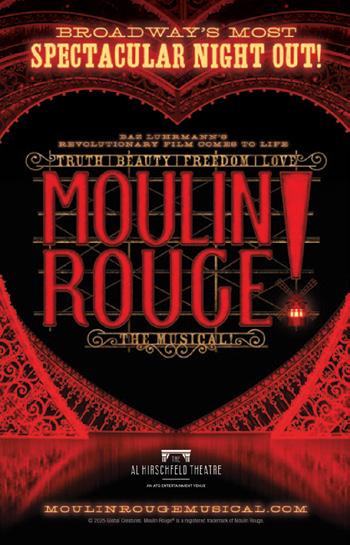 Baz Luhrmann’s revolutionary film comes to life onstage, remixed in a new musical mash-up extravaganza. Directed by Tony Award winner Alex Timbers, MOULIN ROUGE! THE MUSICAL is a theatrical celebration of Truth, Beauty, Freedom and—above all—Love. With a book by Tony Award winner John Logan; music supervision, orchestrations and arrangements by Tony Award winner Justin Levine; and choreography by Tony Award winner Sonya Tayeh, MOULIN ROUGE! is more than a musical...it is a state of mind.