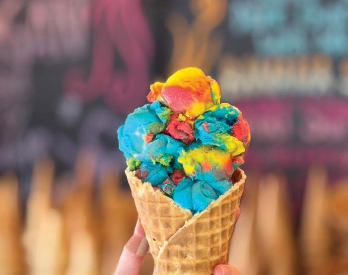 On a cloudy, rainy June day (isn’t weather strange?), the two of us packed into Zoe’s car and headed south, toward Wyoming and our next stop: Tsisiki Ice Cream . Open fairly recently, this overlooked gem fuses classic ice cream flavors with popular Latin ingredients. This is no better seen than in their most popular item: the Mangonada. Combining fresh slices of mango, vanilla ice cream, chamoy, tajin, and a tamarindcoated straw, this tall dessert cup dances between sensations of both spicy and sweet, leaving in its wake a delightfully tangy and refreshing taste. And, while Tsisiki Ice Cream may not, unfortunately, offer much in the way of dairy-free options, their menu does include some other delicious Mexican treats, such as elotes and fruity paleta.