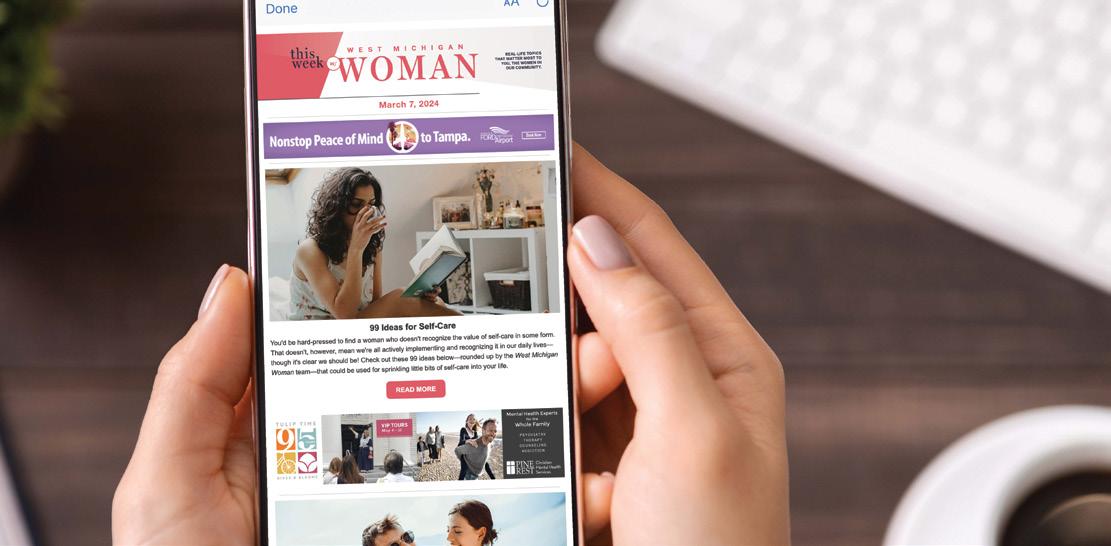 Between issues, we invite you to stay connected through our free weekly newsletter where we share real-life stories that matter most— highlighting women business owners, offering wellness-focused insights for both body and mind, and keeping you informed about events happening throughout our community. Simply visit westmichiganwoman.com and click “Subscribe” in the top right corner.