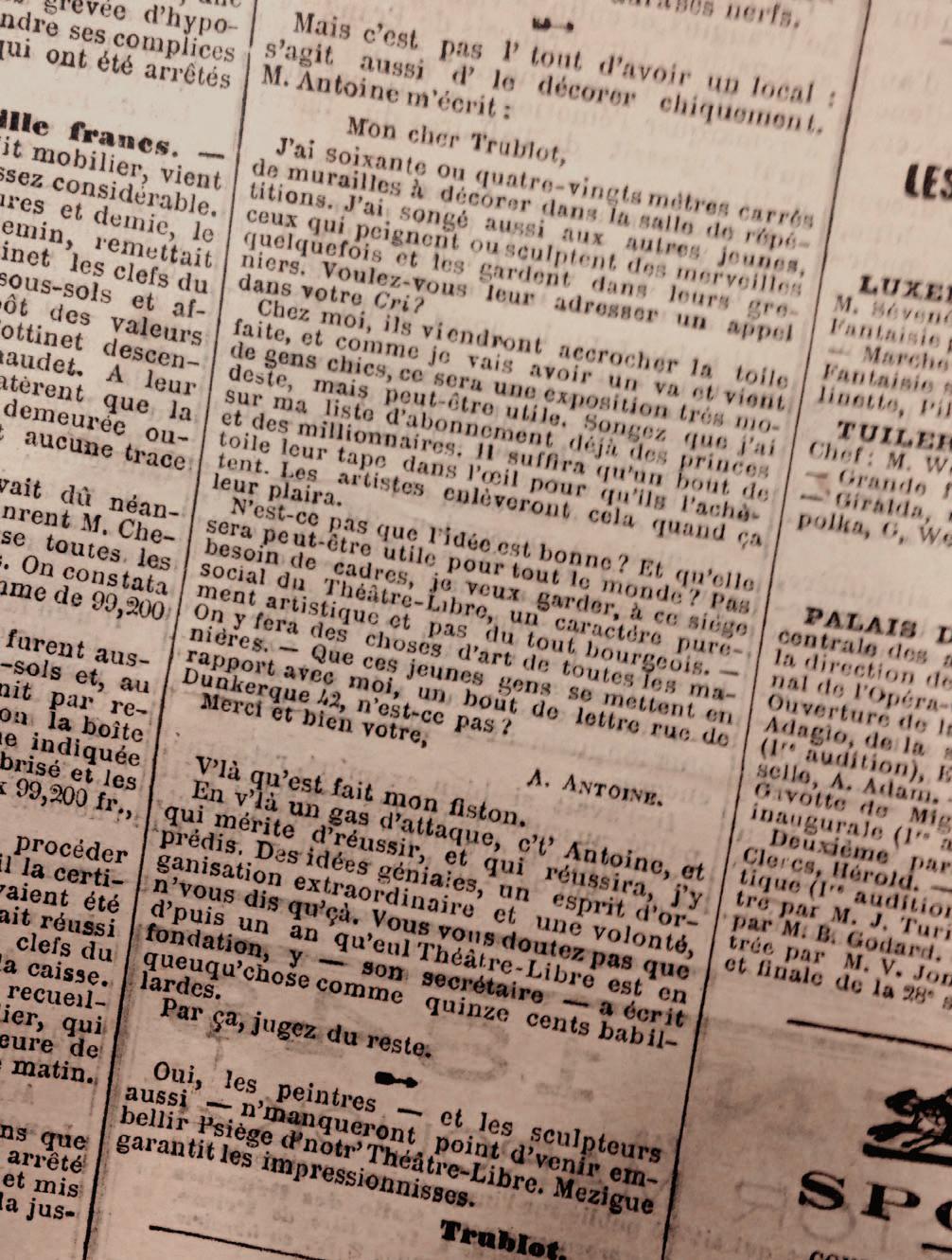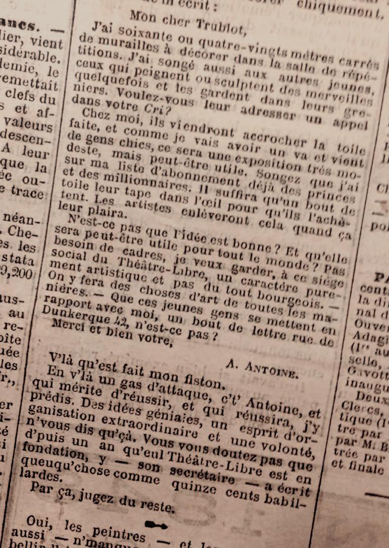 (André Antoine - age 29 , Le Cri du Peuple, September 7, 1887)