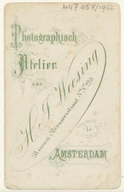 On the back of the photograph, an old ink inscription suggests that it could be Cornelis Vincent, Cor van Gogh, the youngest brother, born in May 1867.