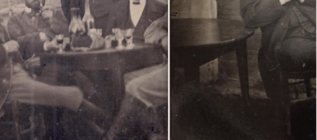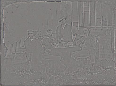 Above, on the left: a scan of the original. The goal was to improve the sharpness of the faces. To achieve this, a manual contrast mask was created in Photoshop, visible on the right.