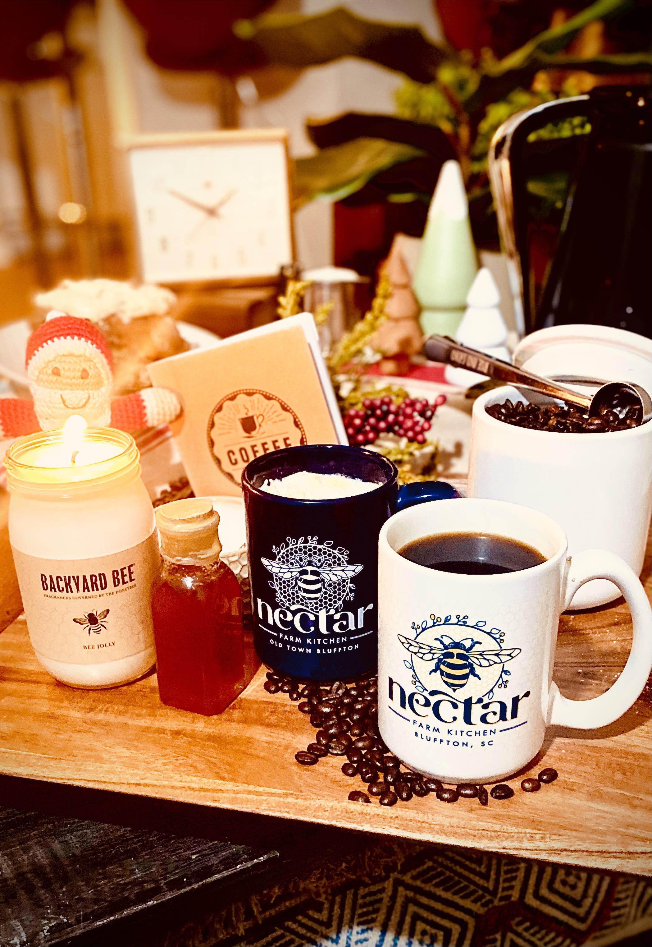 CERAMIC NECTAR COFFEE MUG Available at: NECTAR FARM KITCHEN | 24oz Available in Navy and White $ 9.50