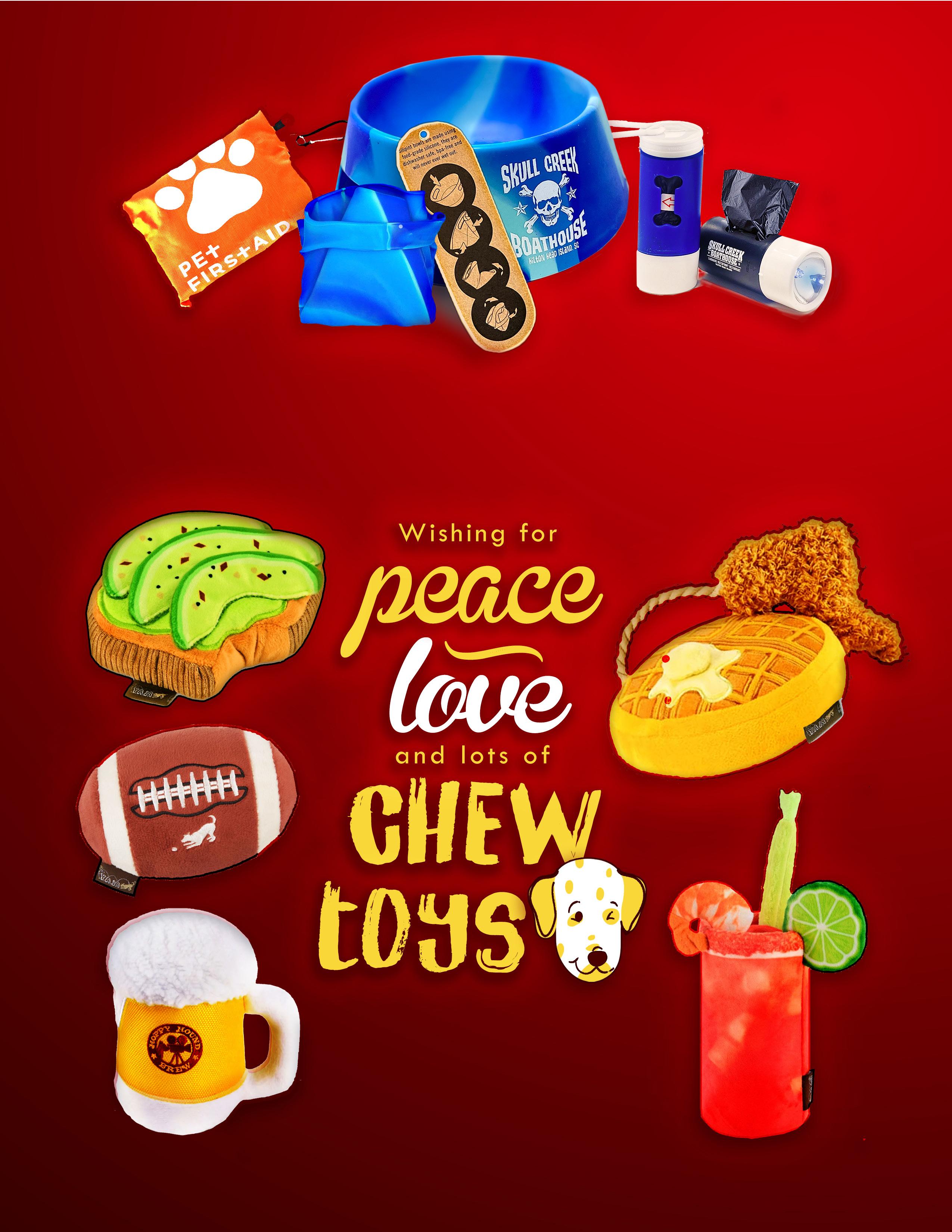 These toys boast adorable designs inspired by everyone’s favorite meal. They’re crafted with a sturdy exterior and doublestitched edges to promote durability— and help stand up to any ruff-housing. Plus, they’re safe to put in the washing machine and dryer if they get dirty. Both you and your four-legged friend will appreciate these eggs-cellent toys! small $7.99 | large $12.50