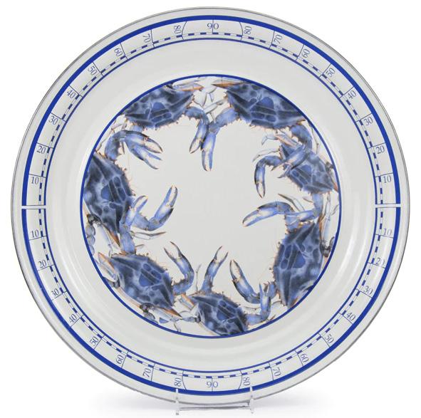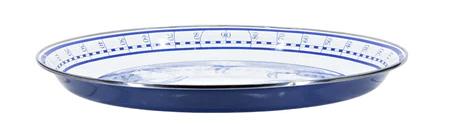 This enamelware is made of carbon steel coated with a porcelain enamel and trimmed in stainless steel. There will be variations in the shading of colors and pattern formations which are the results of the hand-dipped process.