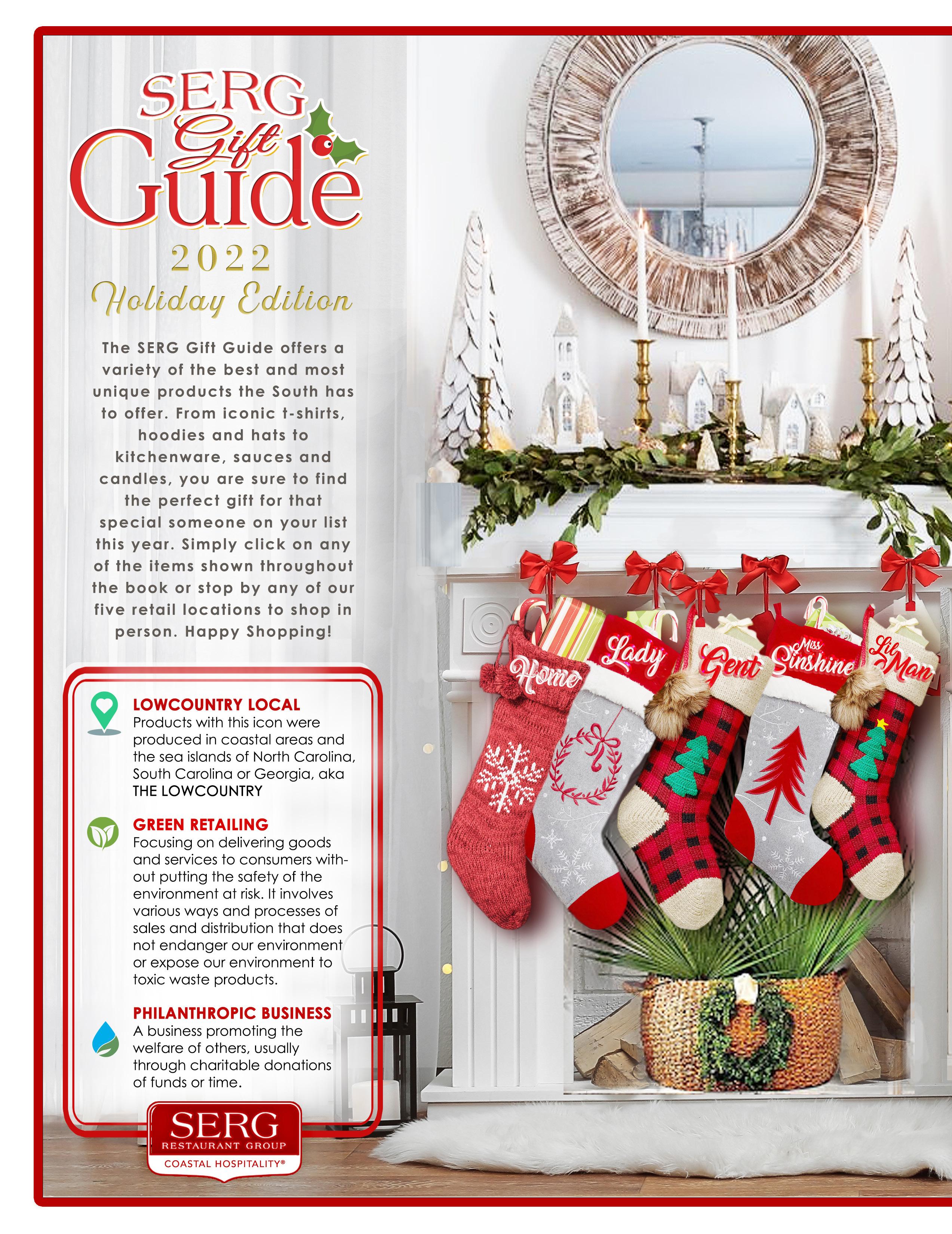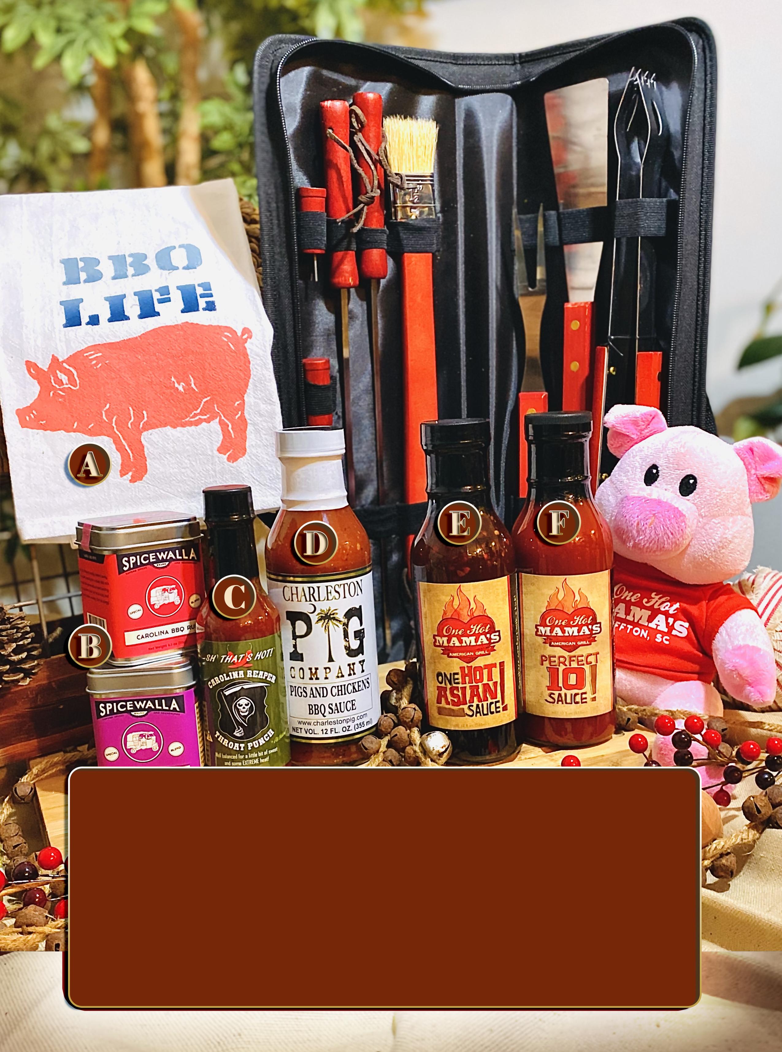 Lowcountry Linens BBQ LIFE HAND TOWEL Availabtle at: ONE HOT MAMAS Made on Hilton Head Island, SC $ 16.00 SPICEWALLA Available at: SKULL CREEK DOCKSIDE Small Tins: Carolina BBQ of Blackening Rub $ 9.95 SH’ THAT’S HOT! - CAROLINA REAPER THROAT PUNCH Available at: COASTAL PROVISIONS CO. & NECTAR FARM KITCHEN (Hilton Head location) Made here on Hilton Head Island, SC, from one of the hottest peppers in the world. Well balanced so you get a little bit of sweet with EXTREME heat! $ 10.00 PIGS & CHICKENS BBQ SAUCE Available at: COASTAL PROVISIONS CO Crafted with care from an old family recipe right out of Charleston, SC $ 7.99 ONE HOT ASIAN SAUCE Available at: ONE HOT MAMA’S A blend of sweet and spicy Thai chili, teriyaki and smoked habanero peppers. $ 9.00 PERFECT 10 SAUCE Available at: ONE HOT MAMA’S A tangy,tomato-based sauce with10 seasonings and a touch of honey $ 9.00 A. B. C. D. E. F. serggiftguide.com