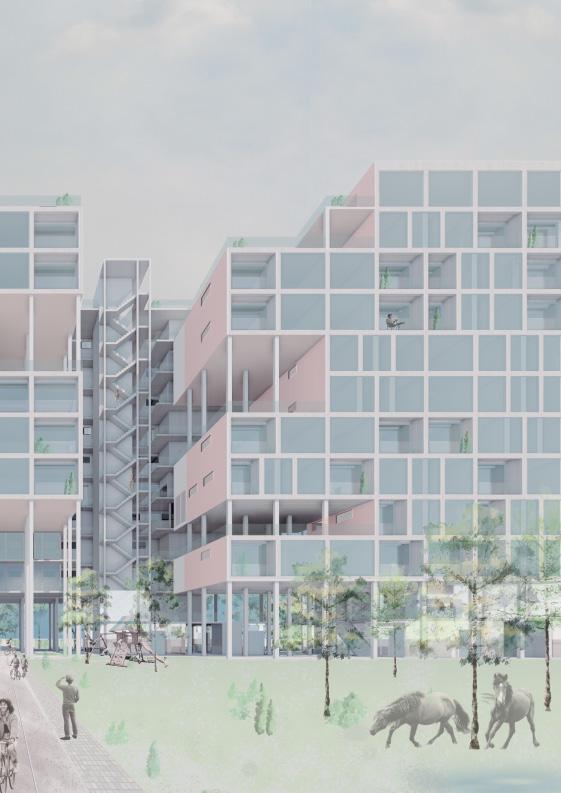 • Freedom to place non-load-bearing walls and appartment typologies