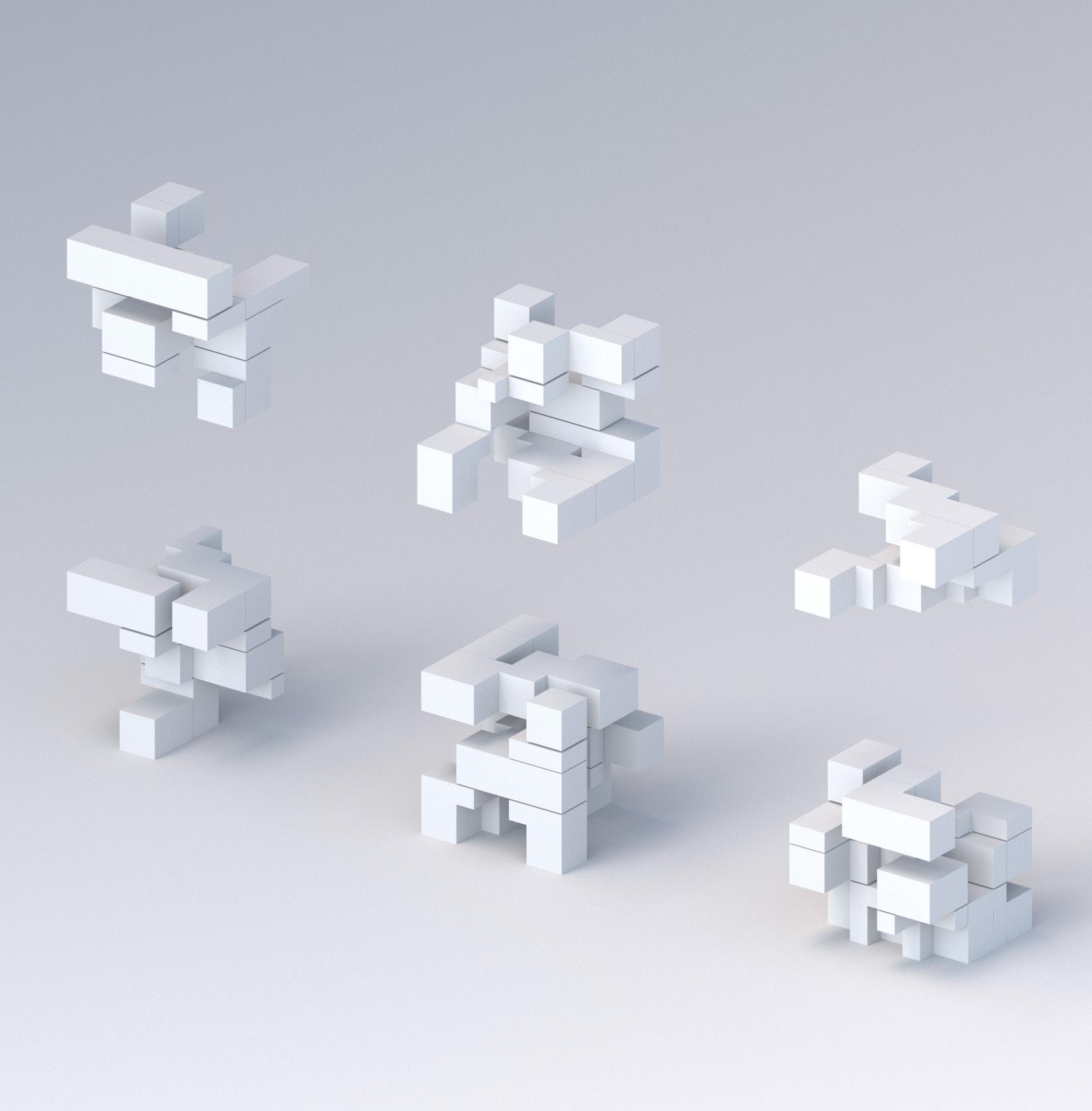 A vista tridimensional evidencia a lógica compositiva do projeto, com volumes dispostos de forma equilibrada em torno de um eixo central. A distribuição dos blocos expressa a repetição dos intervalos e a noção de ordem implícita à estrutura harmônica.