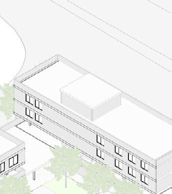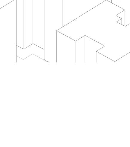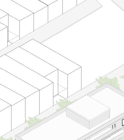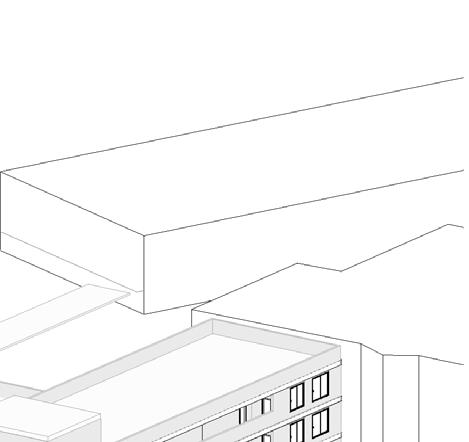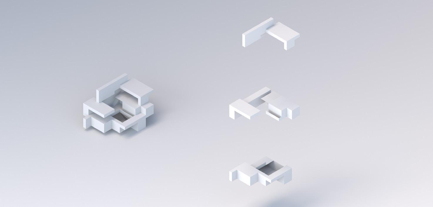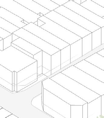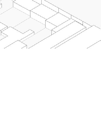 Os deslocamentos horizontais entre os volumes evidenciam o jogo entre cheios e vazios, criando variações rítmicas ao longo da composição. A articulação volumétrica define os espaços com continuidade e clareza, reforçando a noção de progressão espacial.