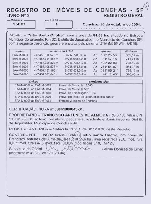 Carlos Fernando Westphalen Santos, Registro de Imóveis de Lajeado, RS.
