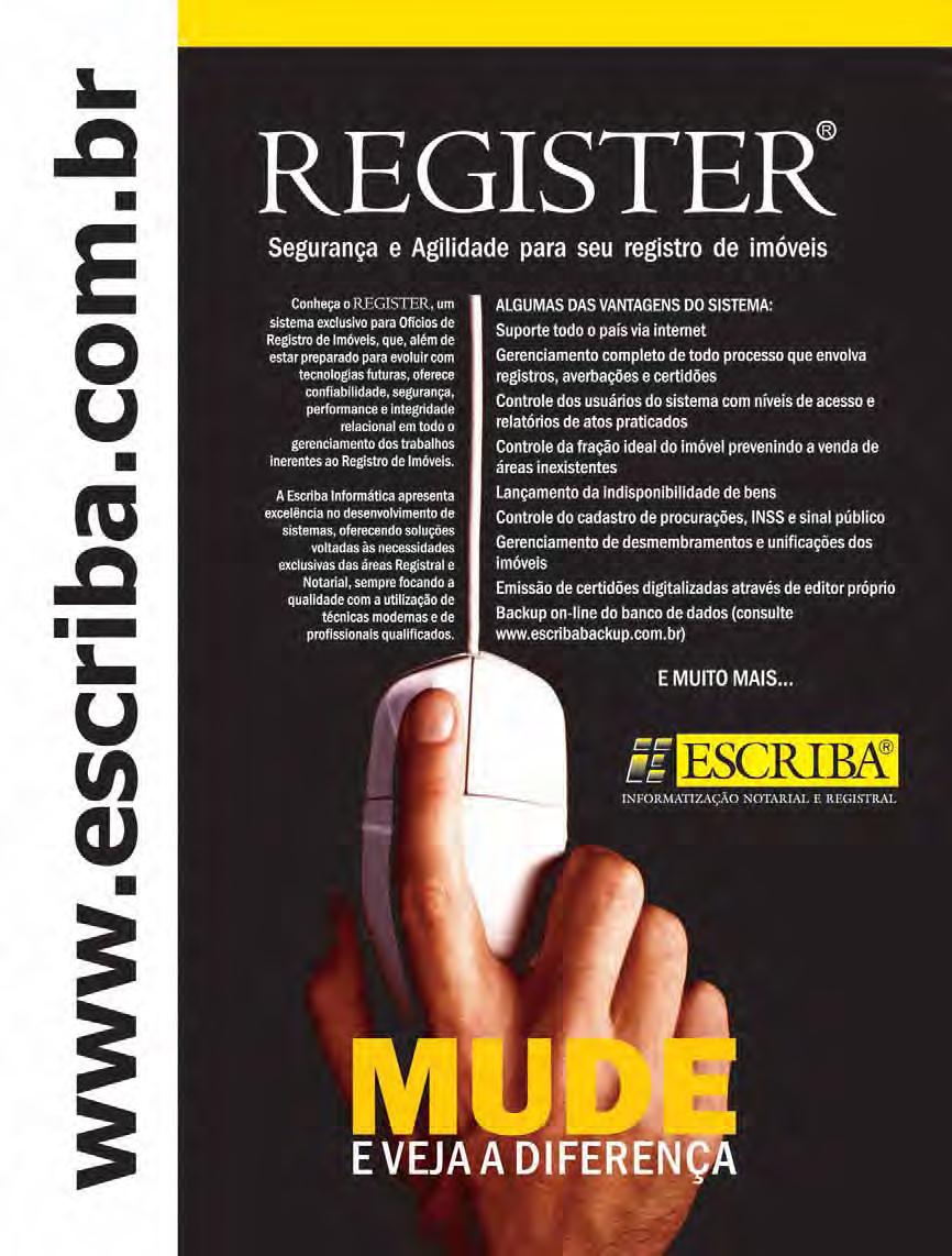 verifico o enorme e rápido progresso que vem tendo a atividade registral em nosso vasto Brasil. Dia destes, o Boletim Irib deu-me a conhecer uma tese de alta relevância econômica e social, de eficácia comprovada onde quer que posta em prática, qual seja, a de oficializar a pequena propriedade, com isso permitindo a inserção de inúmeros excluídos na economia formal, com acesso a crédito, queda brusca dos níveis de inadimplência, redução das taxas de juros para empréstimos lastreados em garantias reais, seguros para plantios e por aí vai. Destaco um valor quiçá maior: a afirmação da cidadania e o combate à sonegação fiscal por redução da informalidade. Isso, que no campo é de resultados tão evidentes, poderia aplicar-se com enorme proveito mediante a regularização, onde fosse isso possível, sem agressão ao meio-ambiente, das ocupações informais em zonas urbanas, como as favelas, medida eficaz para conferir segurança social e redução da violência e da criminalidade. Por quê? Porque uma comunidade de favelados, ao adquirir cidadania, organiza-se mais e melhor e tende naturalmente a expulsar de seu meio os indesejáveis. Há instrumentos legais, como o usucapião coletivo, mas o todo social teria de mobilizar-se para tornar efetivas essas regularizações. Perdoe o entusiasmo. Na verdade, o propósito desta mensagem é felicitá-lo por sua recondução ao espinhoso cargo, mais espinhoso para aqueles que, como o senhor, dedicam-se de corpo e alma para melhorar o que pode ser melhorado e mudar o que pode ser mudado. Em tempos de grandes mudanças, como diria Peter Drucker, somente líderes vocacionados e tenazes estão à altura dos imensos desafios que o cercam de todos os lados, o maior dos quais é a acomodação medíocre de muitos, o conservadorismo estéril. Seja muito feliz e bem sucedido neste novo período como líder plenipotenciário de sua valorosa classe!