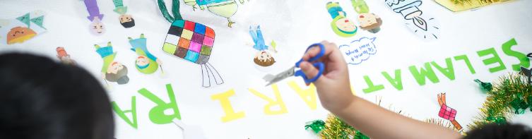 A lot of the teachers said that our group’s chocolate was very good since my team members kept stirring and stirring the chocolate, which made it very smooth! After a while, we made a lot of chocolate dipped breadsticks! Then, we cleaned our table, washed the utensils and headed back into the hall. It felt and sounded like a very busy mall in there since it was so crowded! I saw big Raya cards made by the KS1 and KS3’s!