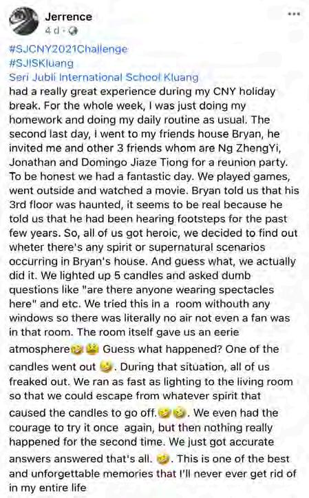 WeaskedourstudentsonsocialmediatosharewithushowtheyspenttheirChineseNewYear holidaysthisyeardespitetherestrictionsduetotheMCO.Checkouttheircreativeresponses!