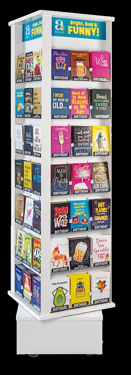 Many card shoppers have evolved design sensibilities and are drawn to carefully crafted expressions with artful embellishments. A*Press brings an easily accessible design flair to the under $5 card market and has the advantage for retailers of being always in stock and frequently refreshed. We love seeing the collection on display, where it creates a beacon of bright, bold colors and funny, relatable sentiment.
