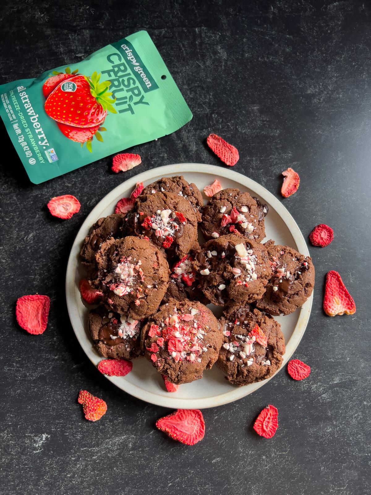 Chocolate Peppermint Cookies with Crispy Fruit Freeze Dried Strawberry