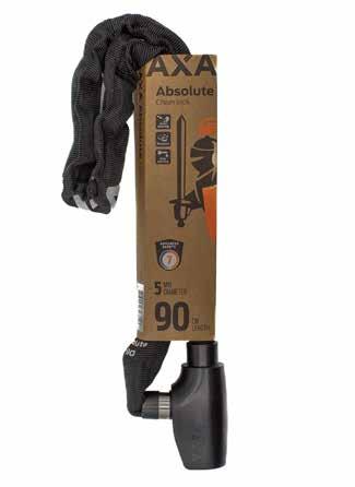 The AXA Absolute 90/5 is a chain for every day use, extremely suitable for short to mid term parking or while used as a second lock to your bike. The Absolute uses an integrated lock housing with automatic click in. This means that you do not have to turn the key to close the lock. This chain has fashionable stainless steel details, which makes it an asset to any bike. The Absolute chain lock is 90 cm long, the links are made of hardened steel and the diameter is 5mm.